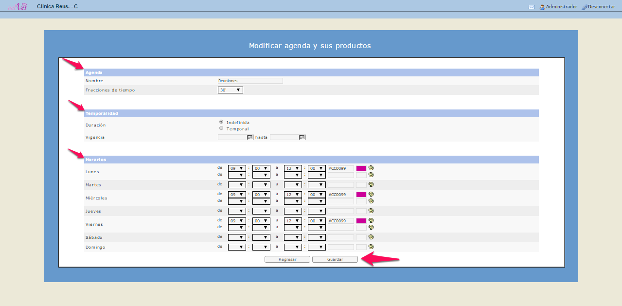 En aquest menú podrem modificar els paràmetres de l'agenda i dels productes que en disposa.
