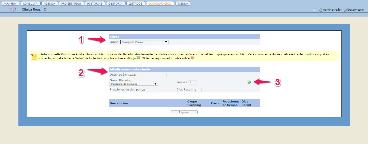 Tots i cada un dels tractaments que ofereix la nostra clínica, prèviament els hem creat els grups (veure Grups tractaments), ara els completem amb els tractaments particulars dins de cada grup. Podem modificar algun dels tractaments ja inserits o afegir un nou: