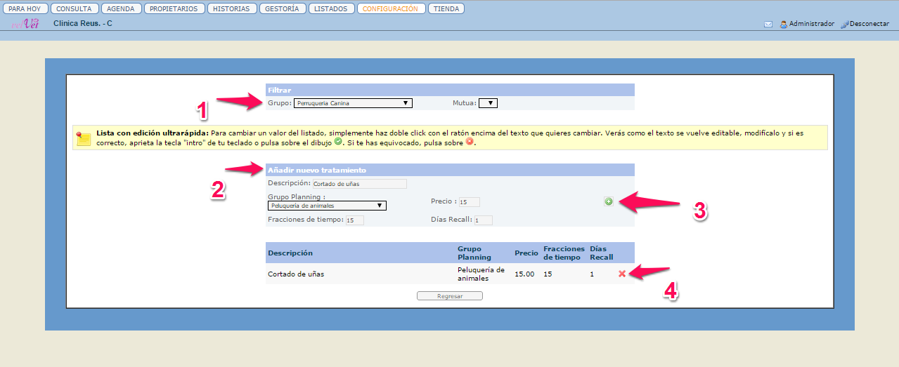 Es refereix a la gestió dels tractaments del catàleg de mútues. Aquests vénen definits des de la pròpia muta, però el fet de poder-los integrar en el Velvet soft facilita molt la tasca ja que no cal consultar el catàleg cada vegada que intervinguem a un animal amb mutua.