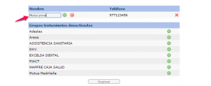 Aquest menú ofereix gestió de mútues o sigui que ens permet modificar el nom i dades de les mútues amb les quals treballem o afegir alguna de nova. Vegem les següents imatges: