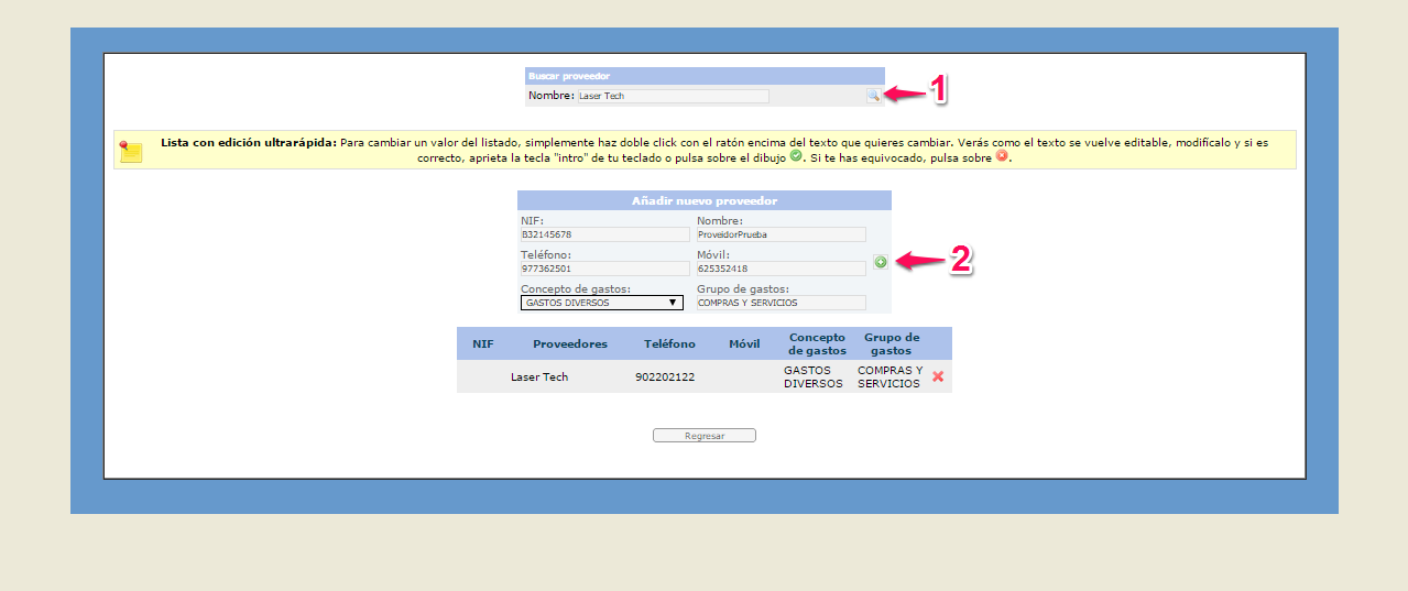 Per modificar un proveïdor serà tan senzill com fen doble clic d'amunt de la informació que vulguem modificar.