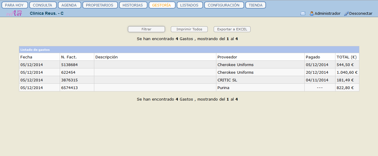 En aquest menú tal com el seu nom indica és el llistat de la informació detallada de les despeses.