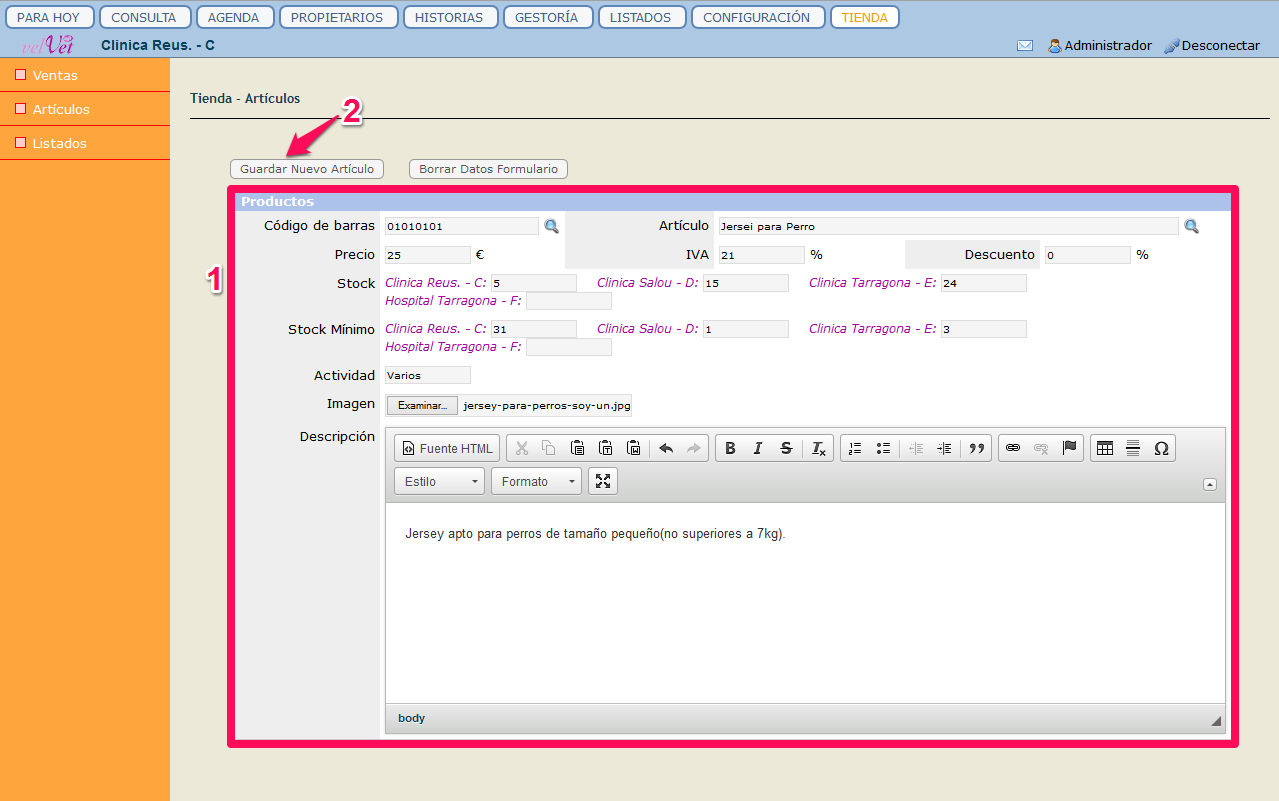 2. Clicar al botó "Guardar Nuevo Artículo".
