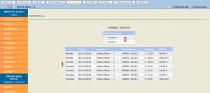 En primer lloc veiem una pantalla on podem visualitzar tots els documents que han estat emesos (1), tant factures com rebuts. Clicant a sobre de cada un d'aquests documents es genera un pdf de la factura o rebut seleccionats.